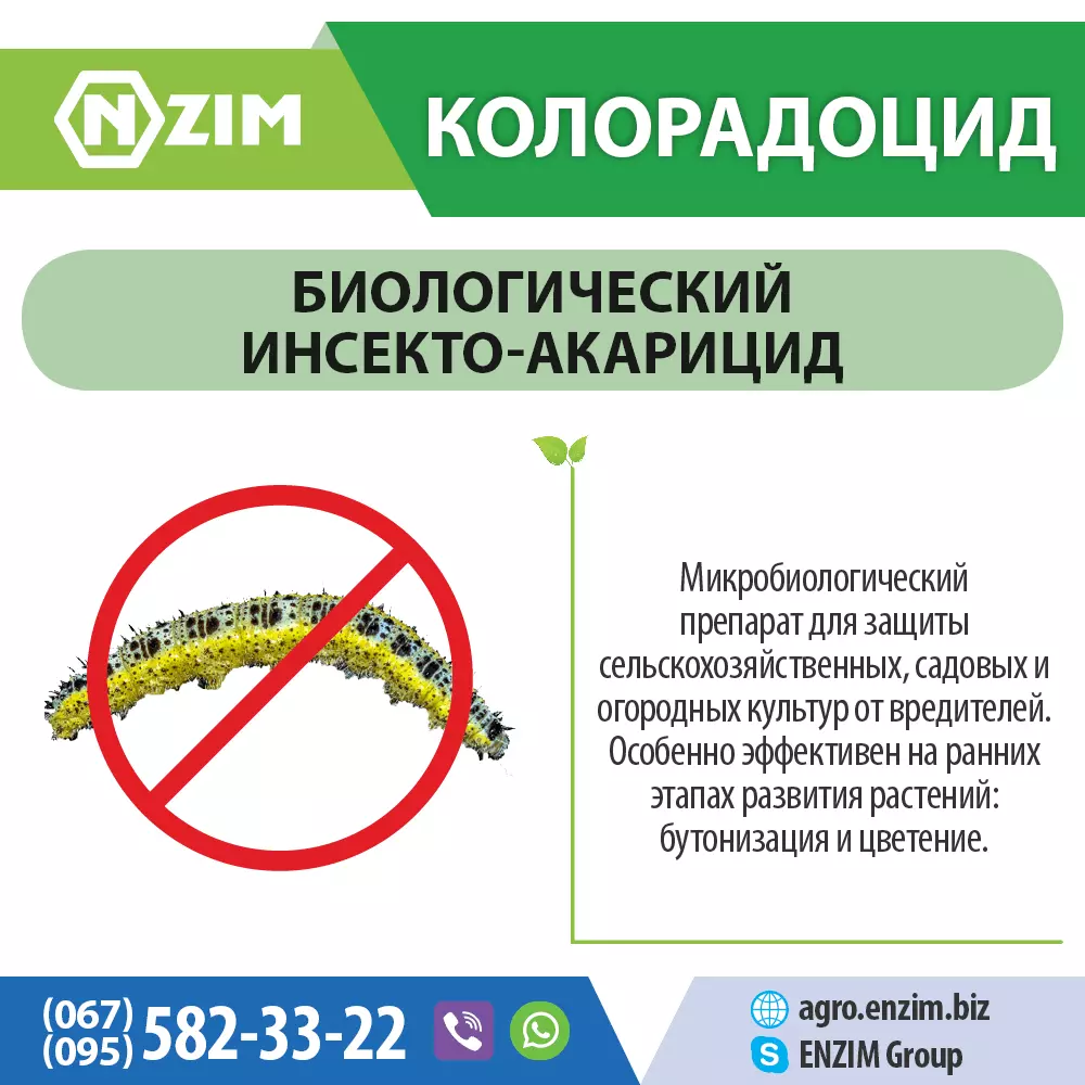 - микробиологический инсектицид, эффективное средство для защиты сельскохозяйственных, лесных и лекарственных культур от вредителей: колорадского жука (личинки I-III возраста), паутинного клеща, гусениц капустной совки, капустной белянки, капустной моли и многих других вредителей.
